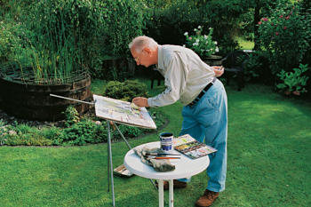 Volkhochschule. Er leitet eine Klasse für Aquarellmalerei
