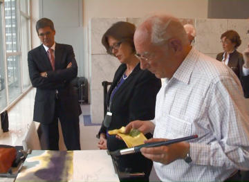 Kunsterzieher mit der Eintragung in das Goldene Buch